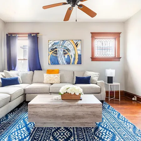 The 3-bedroom Historic Family Getaway, 5 Star Location, Royal Beds Villa is located about a 20-minute walk from the illuminated JC Nichols Memorial Fountain, giving access to various tourist spots nearby.
